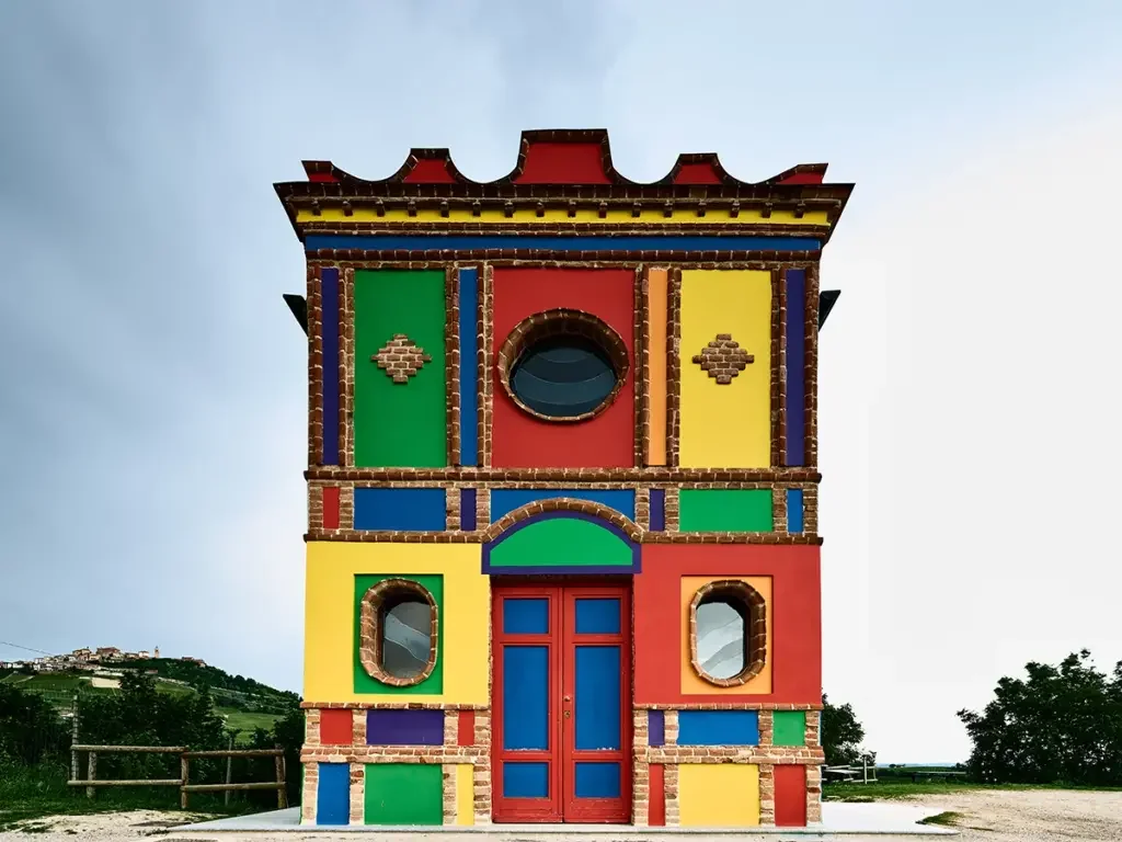 The most famous artwork is the renovation, completed in 1999, of a neglected chapel. Built in 1914 but never consecrated, the Cappella di Santissima Madonna delle Grazie, now known as the Barolo Chapel, had come with the purchase of the Brunate vineyard in La Morra in 1970. It was being used as a tractor shed when the Ceretto family met artist David Tremlett in the 1990s and commissioned him and, at his suggestion, Sol LeWitt to transform it.
