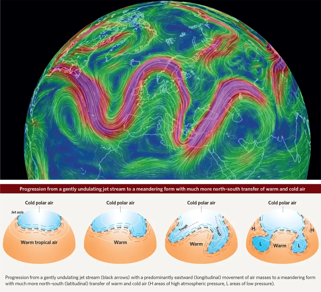 4. JA Francis, SJ Vavrus, “Evidence Linking Arctic Amplification to Extreme Weather in Mid-Latitudes,” Geophysical Research Letters 39 (2012), L06801 doi:10.1029/2012GL051000; D Coumou et al, “The Influence of Arctic Amplification on Mid-Latitude Summer Circulation,” Nature Communications (2018) doi:10.1038/s41467-018-05256-8; M Stendel et al, “The Jet Stream and Climate Change,” Chap.15 Climate Change (Third Edition), Observed Impacts on Planet Earth (2021), pp.327–57.
