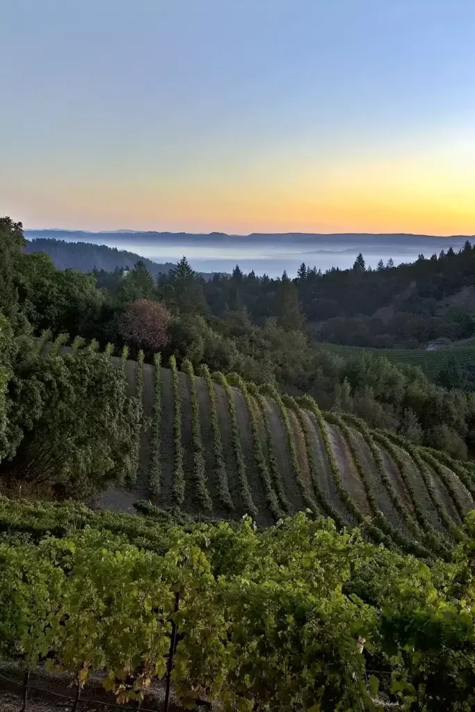 The fogline marks the border between the valley and mountain, in growing terms. Above it, neither the daytime heat nor the overnight chill are extreme; the valley floor experiences diurnal shifts that are nonexistent here. “It can be 100°F (38°C) on the valley floor but it’ll be eight to ten degrees cooler up here. There’s more sunlight but less heat. It’s a more even growing cycle.”