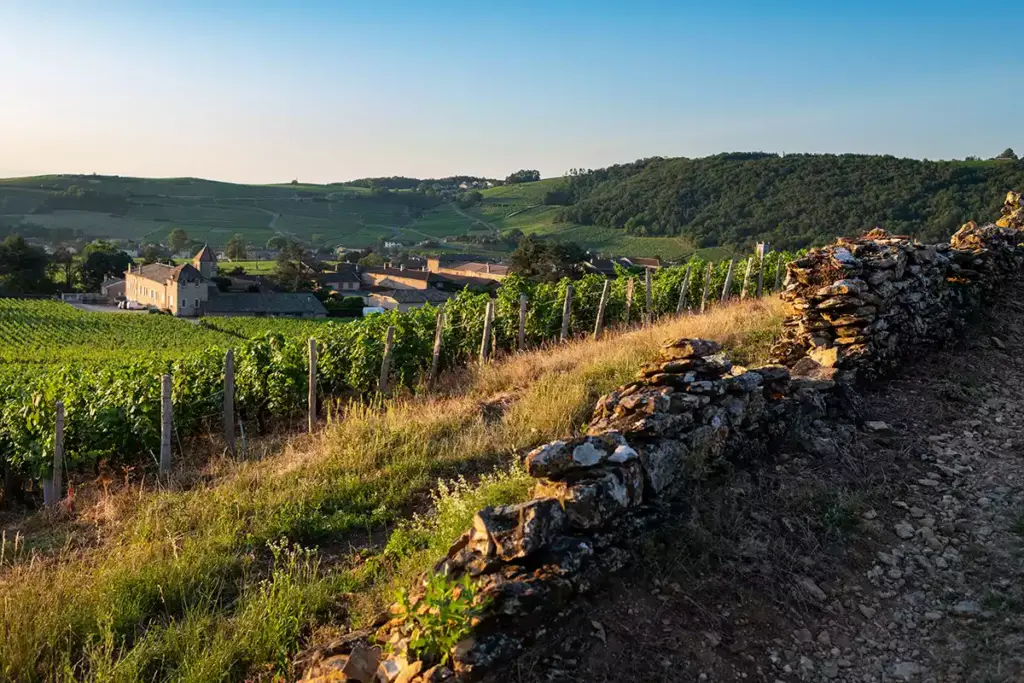 There are 194ha (479 acres) of Pouilly-Fuissé premier cru scatted across four communes. The heartland of the region is Fuissé, a large village with an outsized church, which is flanked by slopes of premier cru. There are 51.35ha (127 acres) of premier cru in Fuissé. On the north side of the church these vineyards flow into those around the neighboring hamlet of Pouilly. However, Pouilly turns its back on Fuissé and links itself with Solutré, which doesn’t seem logical, but so little in Burgundy is. (Pouilly-Solutré has 71.73ha [177 acres] of premier cru).
