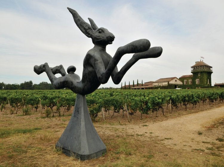 Driving south from Haut-Brion and congested, urban Pessac, I always begin to relax as the landscape opens up, becoming more pastoral and pretty on the way to the town of Léognan, around which the majority of the crus classés are clustered. The Cathiards put a public spotlight on the Graves and made it a tourist destination when they built a luxury hotel and Les Sources de Caudalie vinotherapy spa next to the vineyards at the end of the 1990s. The complex now includes a Michelin-starred restaurant, a wine bar that serves great Graves wines by the glass, and scattered throughout the vineyards are sculptures such as Barry Flanagan’s enormous Leaping Hare. Despite local resistance, the Cathiards persevered; they understand the importance of visibility, promotion, and marketing and have just opened a boutique hotel in nearby Château Le Thil, which they purchased two years ago. By 2007, they were hosting the exclusive VinExpo Fête de la Fleur party. “We fell in love with Smith Haut Lafitte when we saw it from a helicopter,” Florence Cathiard once told me. “When we bought it, it had a hole in the roof and a vineyard whose soil had been depleted by chemicals.” They, too, plunged into improvements. The wines were once considered among the poorest in Pessac-Léognan, the grapes harvested by machine. They rebuilt the château, added a new cellar, renovated the winery, started their own on-site cooperage, copying the first growths, instituted what they call “bio-precision”-organic and biodynamic viticulture and satellite technology to track ripening-and began using more natural methods in the cellar. Their latest addition, in 2013, is what they call their “stealth” cellar for their second wine. Built in an abandoned gravel quarry it will capture the carbon emitted during fermentation.