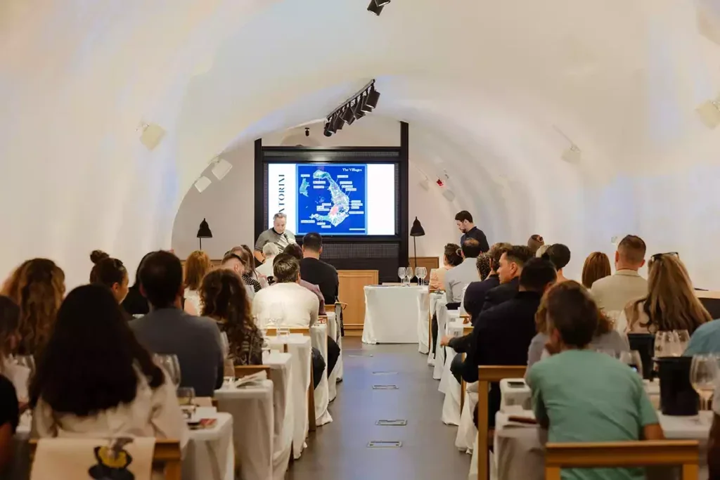 It is hard to imagine a better two-day event on a particular wine region than Santorini’s Vedema. A collaboration between Katikies Hotels and Yiannis Karakasis MW, it evolved from Selene Vedema, established by restaurateur George Hatzigianakis several years ago. Based at one of Katikies five-star hotels—Katikies Garden, a beautifully converted former monastery in Fira, the largest town—it is masterminded by the charismatic and dynamic Athens-based Karakasis, who is doing as much as anybody to highlight the distinctive personality and sheer quality of the island’s wines—not only through this annual event but also through his magisterial book The Wines of Santorini (2021) and his 50 Great Greek Wines project, involving no fewer than seven of his fellow MWs. I was lucky enough to attend last year’s edition, running September 29–30, 2023.