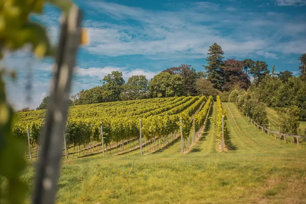 Nick Clarke worked (and still does) in energy and bought Weyborne in 2010. It consists of 300 acres (120ha), with 25 acres (10ha) planted with vines now and in full production. Half is Chardonnay, 30% is Pinot Noir, and the rest is Pinot Meunier, with a bit of Pinot Noir Précoce (or Frühburgunder; see WFW 47, pp.149–53), which in 2024 was sold to Wiston for its still rosé. Wiston makes all the Weyborne wines, though there are thoughts of building, buying, or extending to have a winery; exactly where is not clear, however, since the road to the estate is single-track, and one can imagine what the planners and the locals would say.